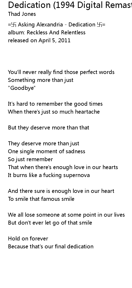 | ≡卐 Asking Alexandria - Dedication 卐≡ | |