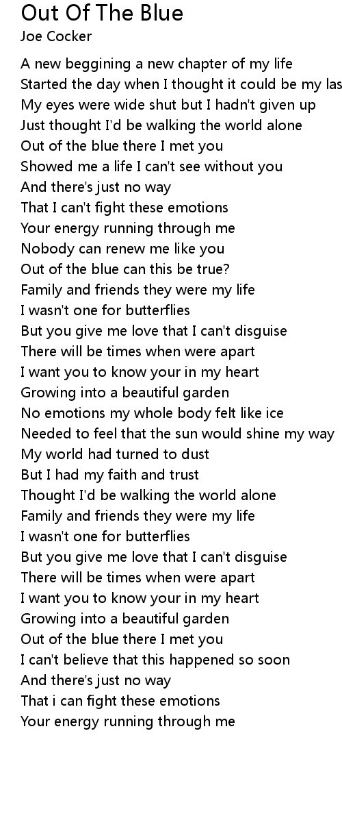 Out of the blue there I met you |