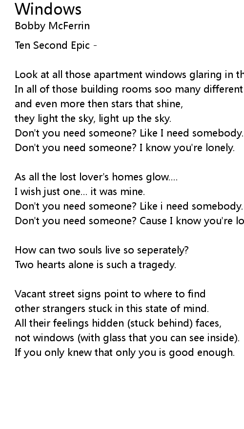 Don't you need someone? Like i need somebody.