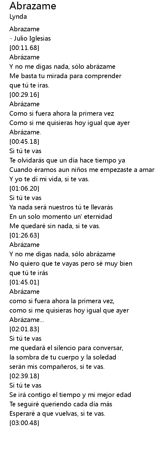 | [00:16.53] | Y no me digas nada, sólo abrázame |