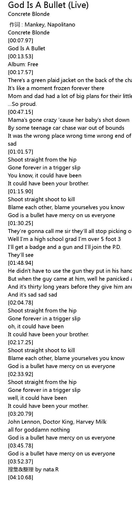 | [03:28.75] | God is a bullet have mercy on us everyone |