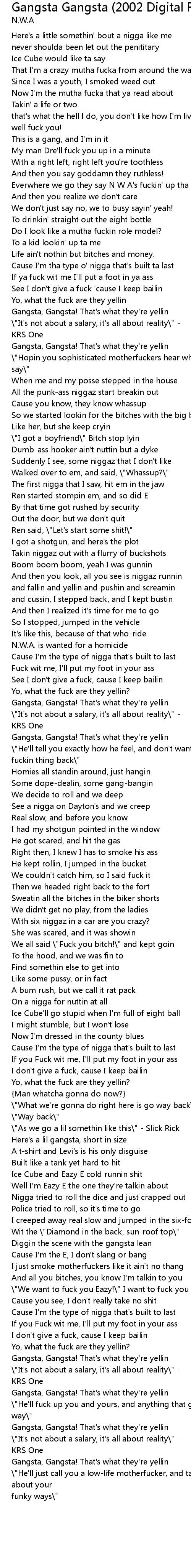 Everwhere we go they say N W A's fuckin' up tha program |