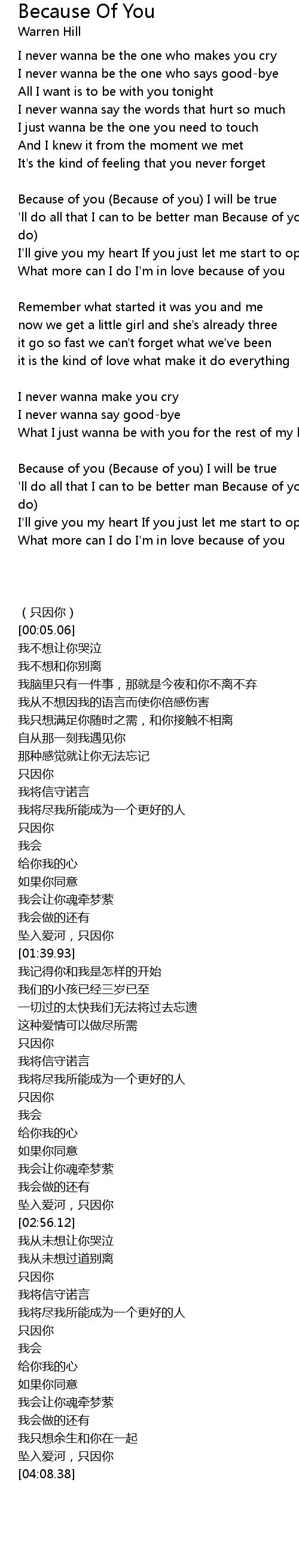 Because of you (Because of you) I will be true |