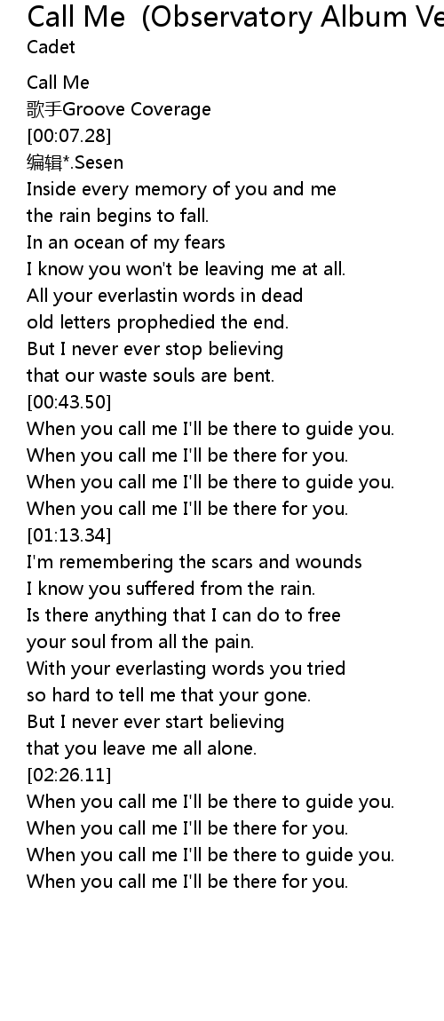 | [00:57.44] | When you call me I'll be there to guide you. |