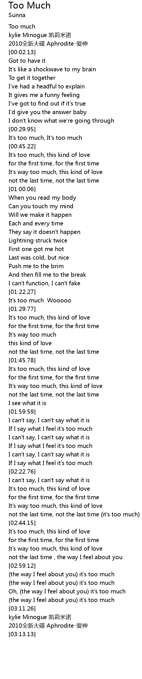 | [03:06.36] | Oh, (the way I feel about you) it's too much |