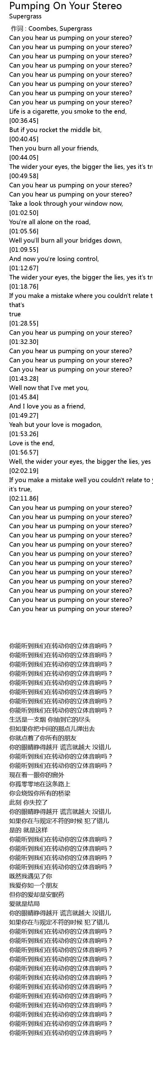 | [00:00.00] | zuò cí : Coombes, Supergrass |
