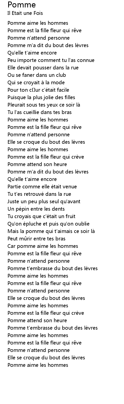 | Pomme m' a dit du bout des le vres | |