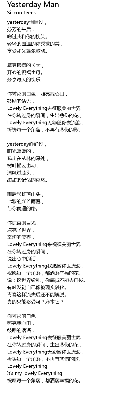 | Lovely Everything wǒ yuàn suí nǐ qù liú làng, | |