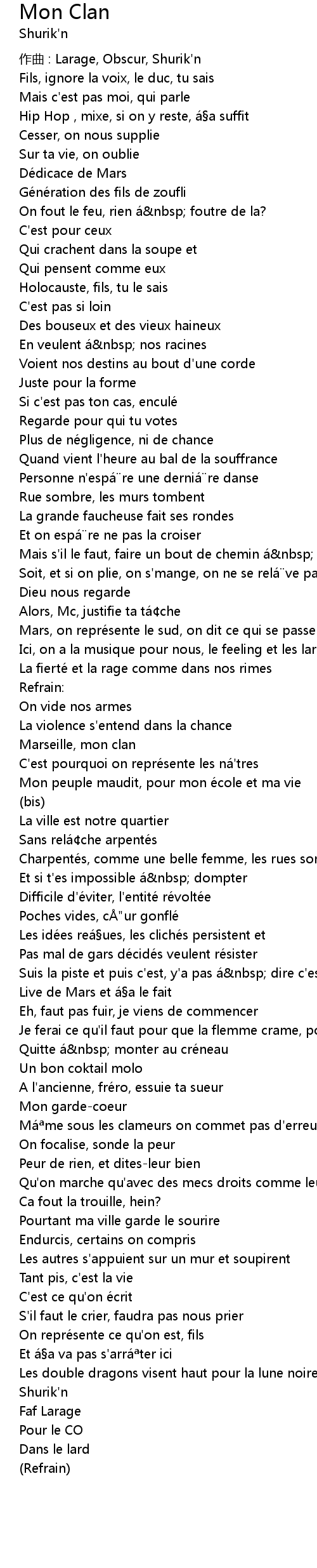 | Marseille, mon clan | |