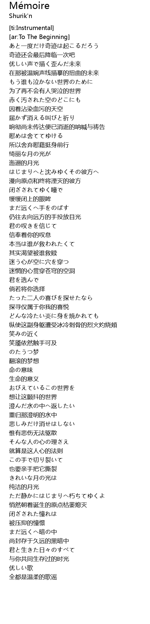 | [03:09.560] | ただ静かにはじまりへ朽ちてゆくよ |