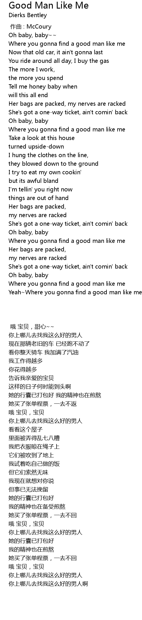 | [02:51.20] | Yeah Where you gonna find a good man like me |