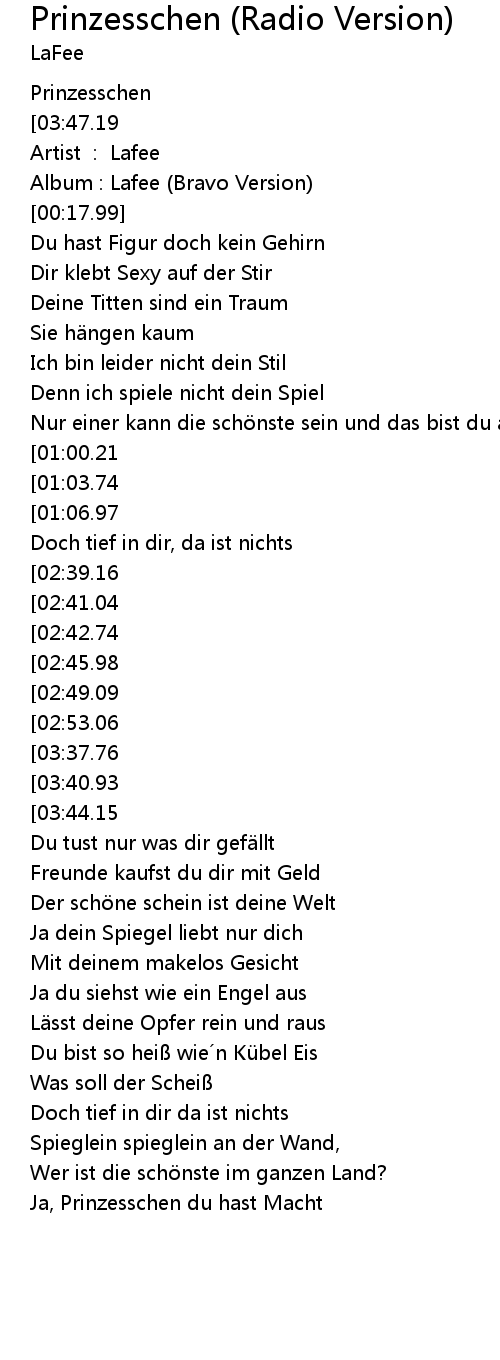 | [03:34.23][02:53.06][01:27.24] | Ja Prinzesschen du hast Macht |