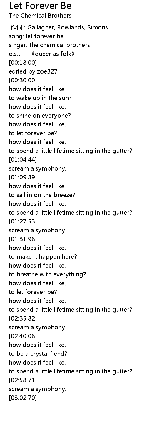 | [00:00.00] | 作词 : Gallagher, Rowlands, Simons |