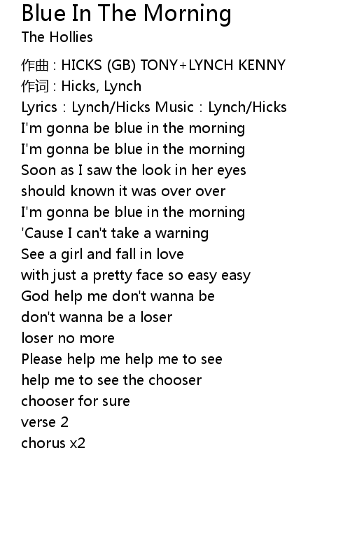 | 歌曲 | Blue In The Morning |