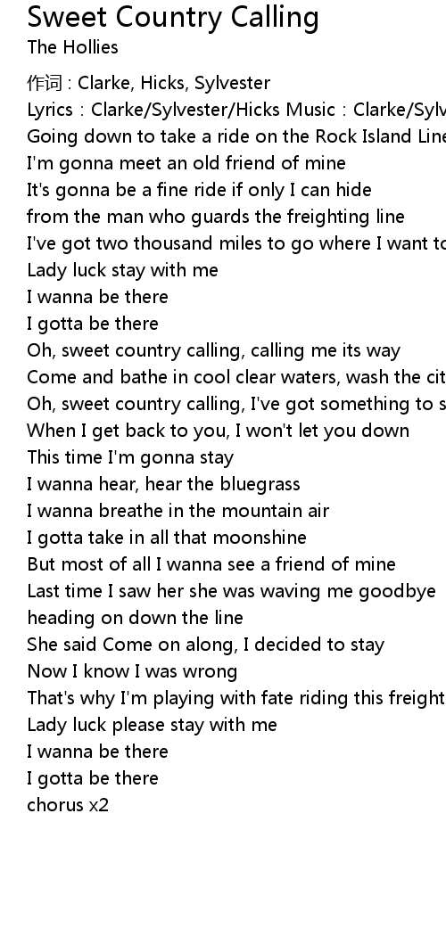 | Oh, sweet country calling, calling me its way | |