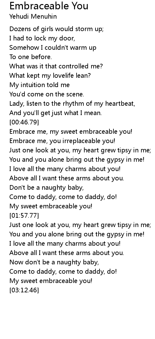Embrace me, my sweet embraceable you! |