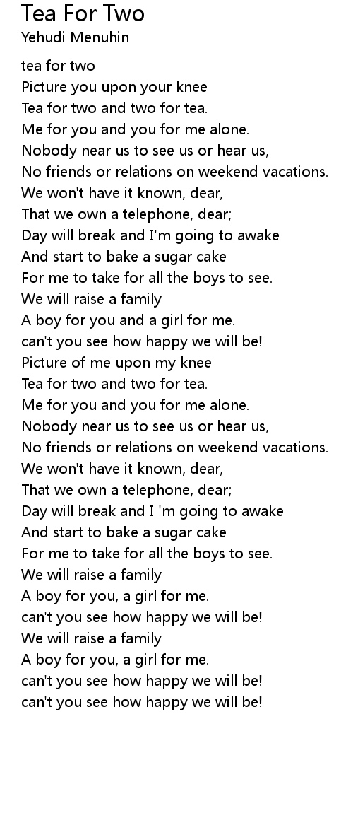 Tea for two and two for tea. |