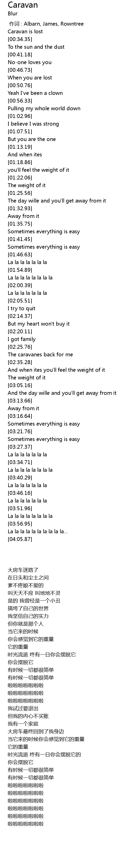 | [00:00.00] | zuo ci : Albarn, James, Rowntree |