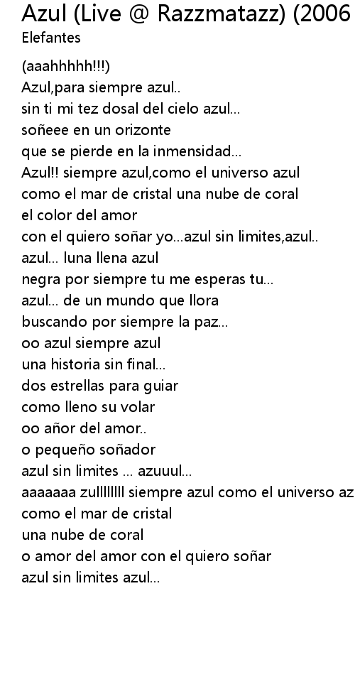 | [01:41.50] | con el quiero so ar yo... azul sin limites, azul.. |