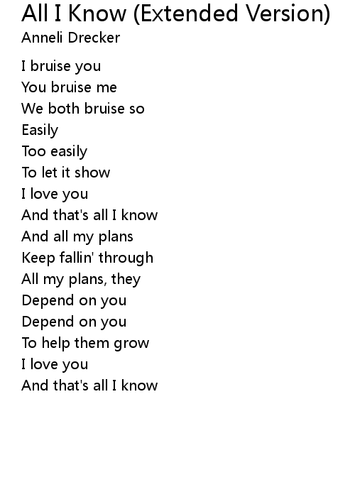 | 歌曲 | All I Know (Extended Version) |