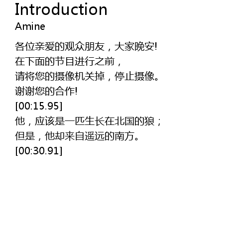 | [00:06.63] | 各位亲爱的观众朋友,大家晚安! |