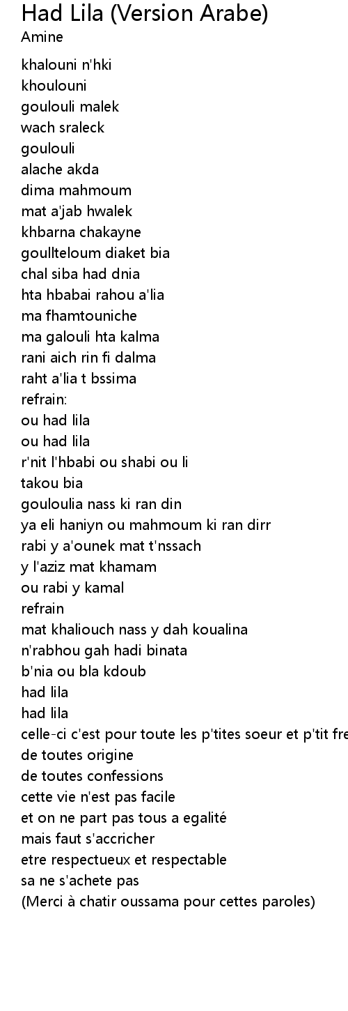 | 歌曲 | Had Lila (Version Arabe) |