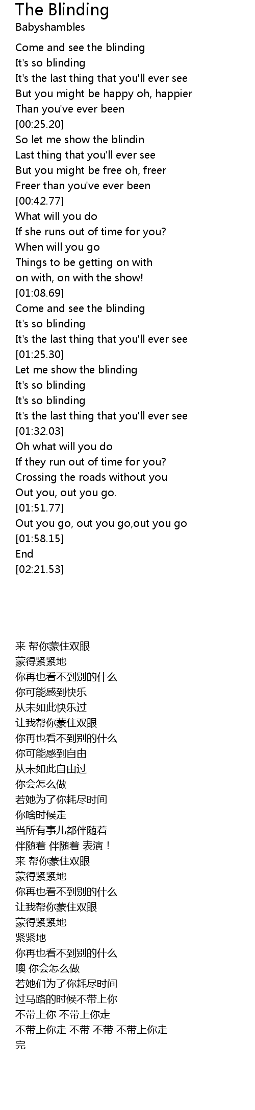 Come and see the blinding |