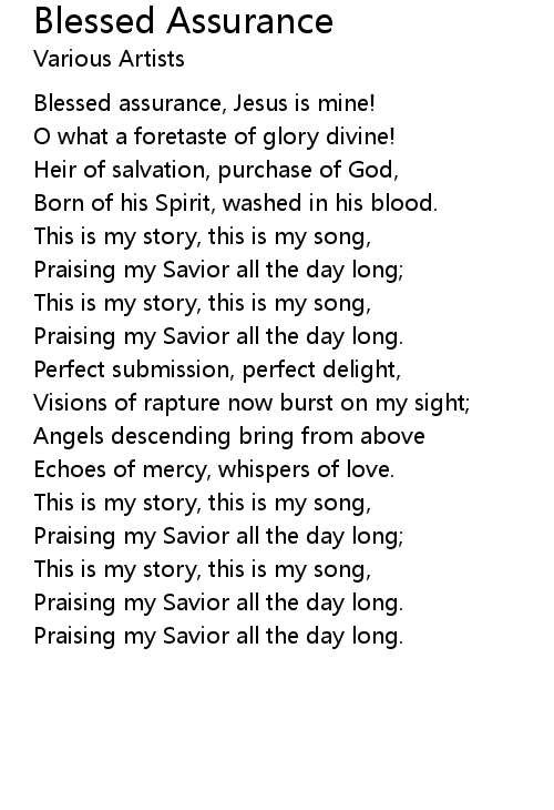 Blessed assurance, Jesus is mine! |