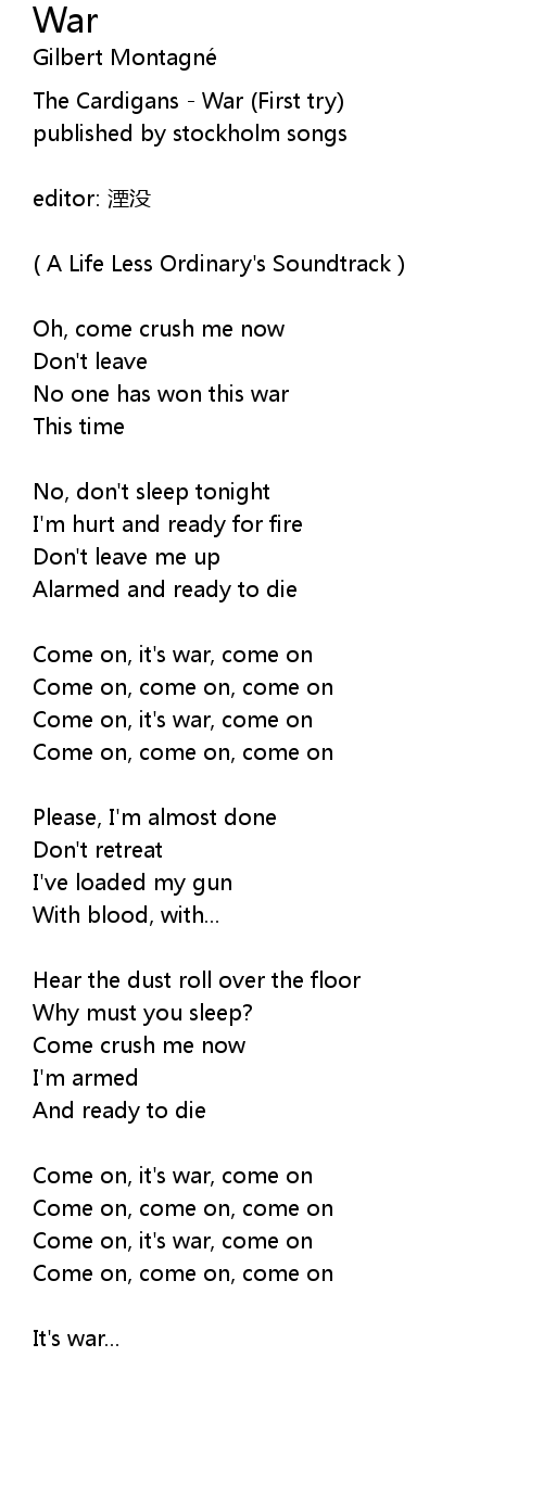 | Come on, it's war, come on | |