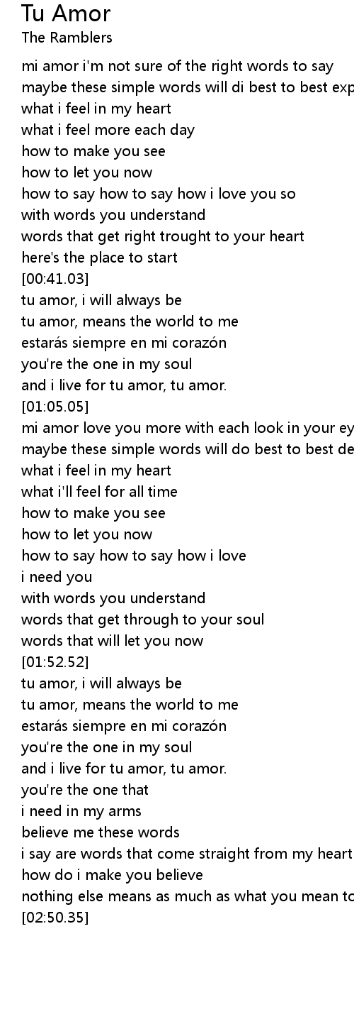 | [00:03.16] | mi amor i'm not sure of the right words to say |