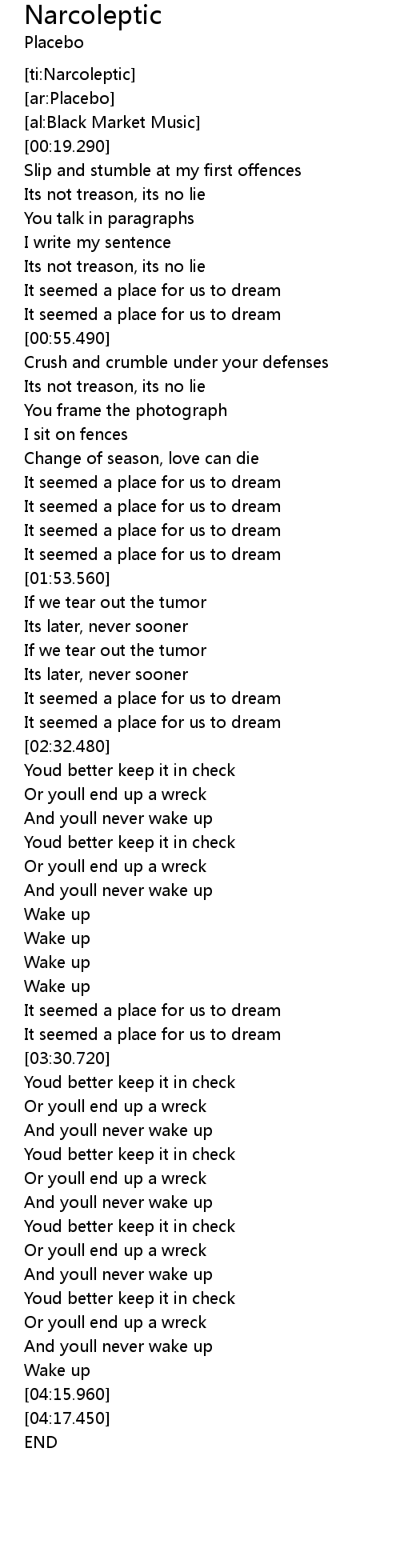 [ti:Narcoleptic] |