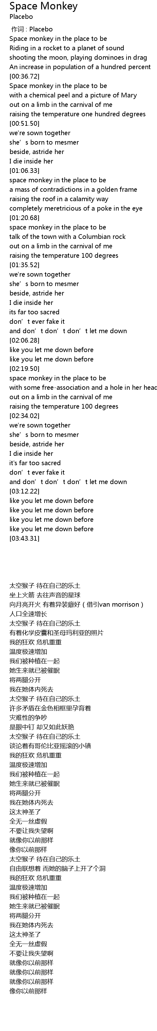 | [00:00.00] | 作词 : Placebo |