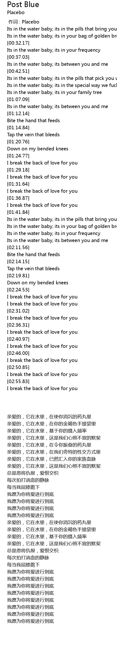 | [01:52.48] | 亲爱的,它在水里,在使你消沉的药丸里 |