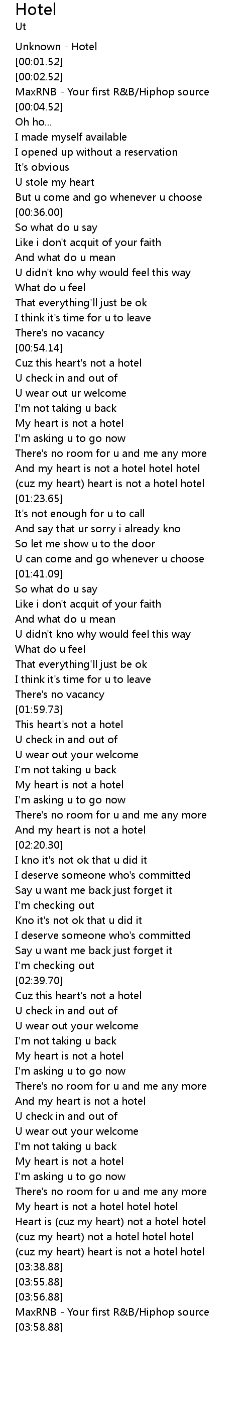 [03:28.20] (cuz my heart) not a hotel hotel hotel