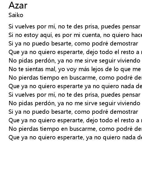 | Que ya no quiero esperarte, dejo todo el resto a mi azar. | |