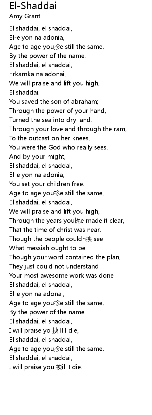 | [00:33.34] | El shaddai, el shaddai, |