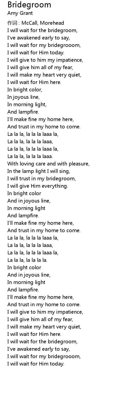 | I will wait for the bridegroom, | |
