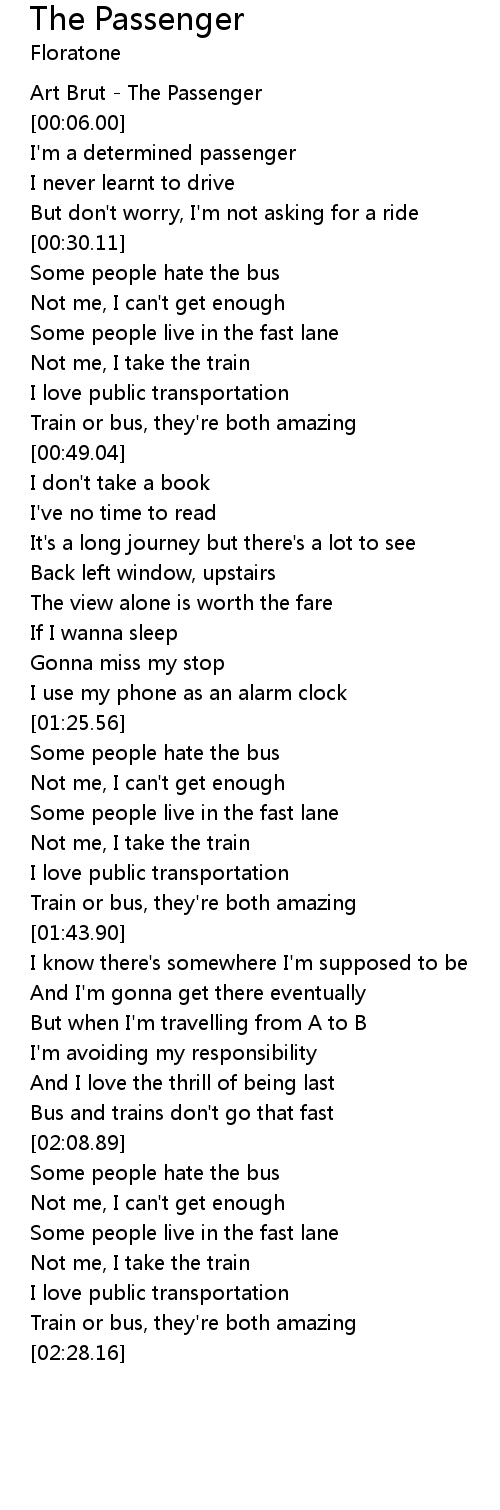| [00:01.00] | Art Brut - The Passenger |