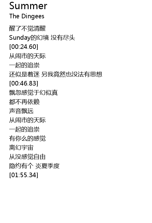 | [01:27.96] | 隐约有个 炎夏季度 |