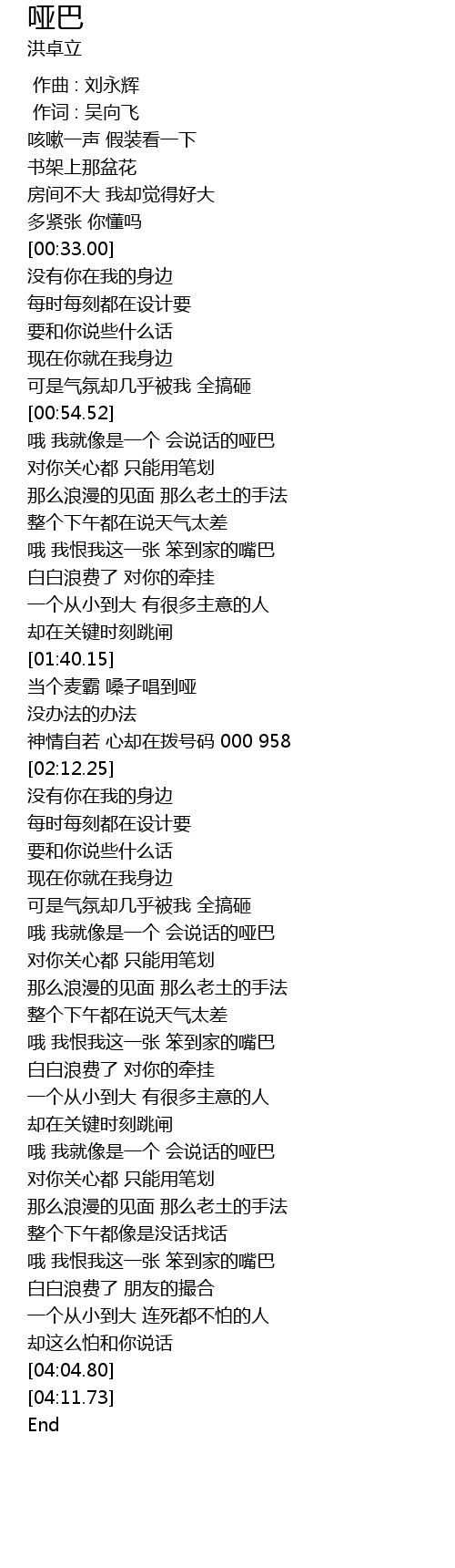 | [00:55.19] | 哦 我就像是一个 会说话的哑巴 |