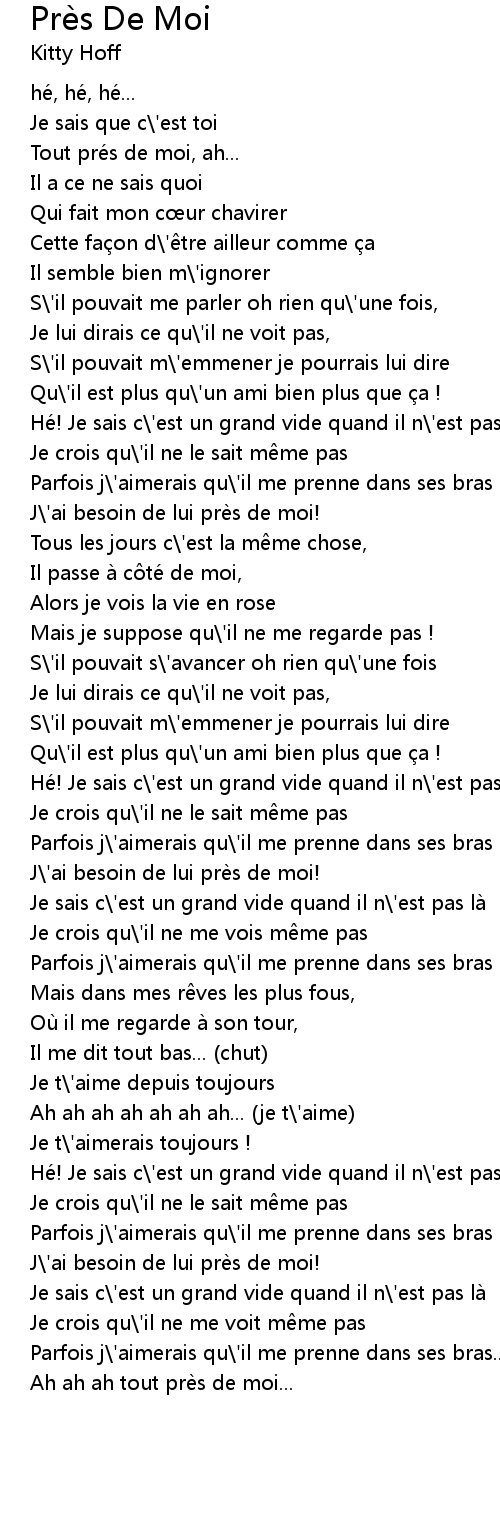 | [00:18.55] | Tout prés de moi, ah... |