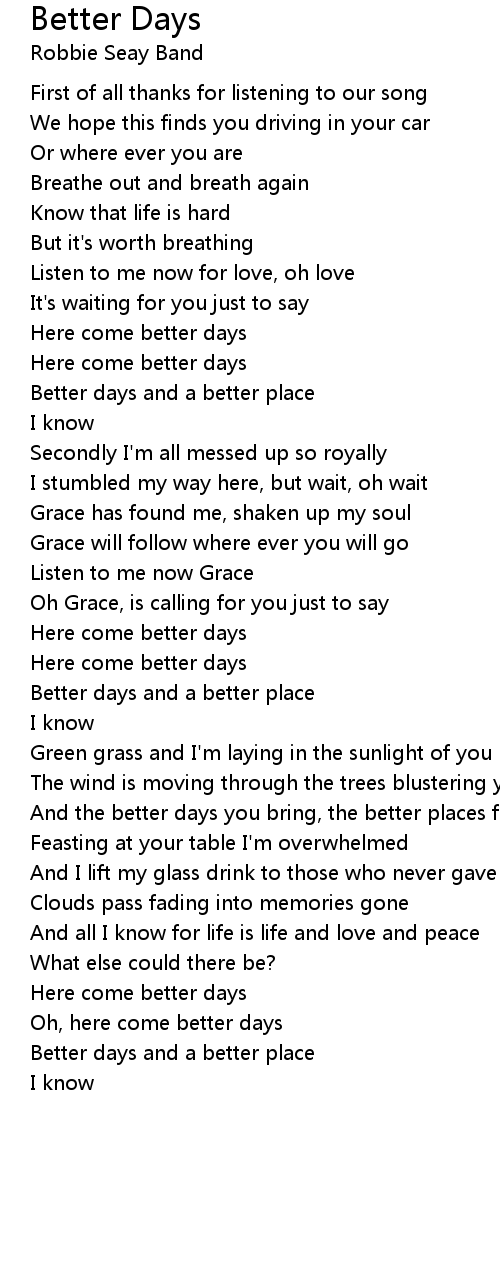 Oh, here come better days |