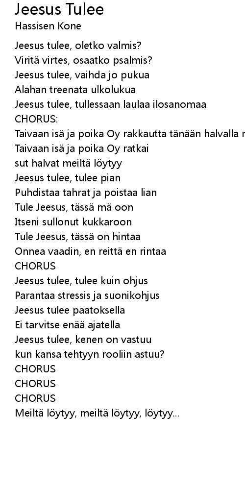 | Tule Jeesus, tässä mä oon | |