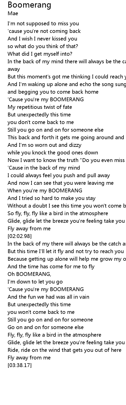 | [00:39.28] | 'Cause you're my BOOMERANG |