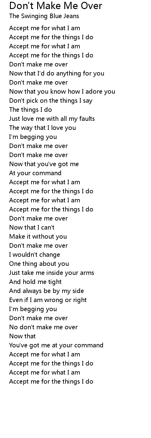 No don't make me over |