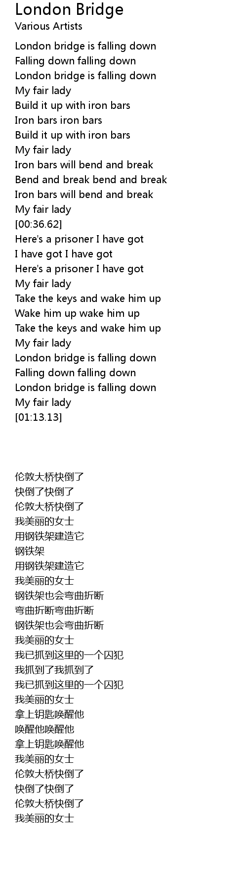 | [00:10.63] | 伦敦大桥快倒了 |