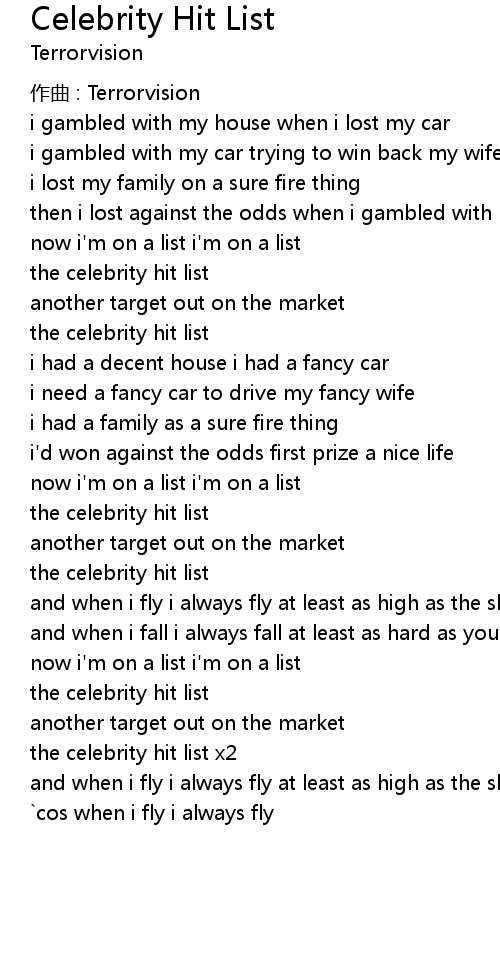 | 歌曲 | Celebrity Hit List |