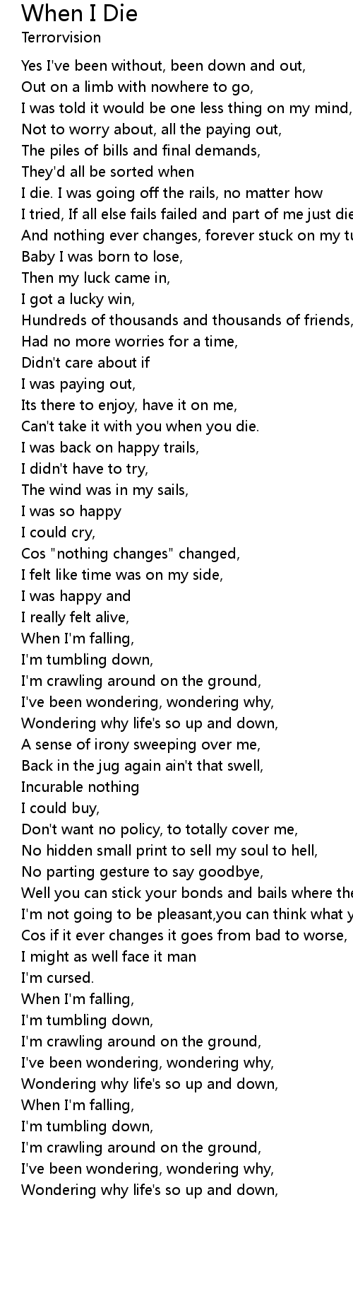 I die. I was going off the rails, no matter how |