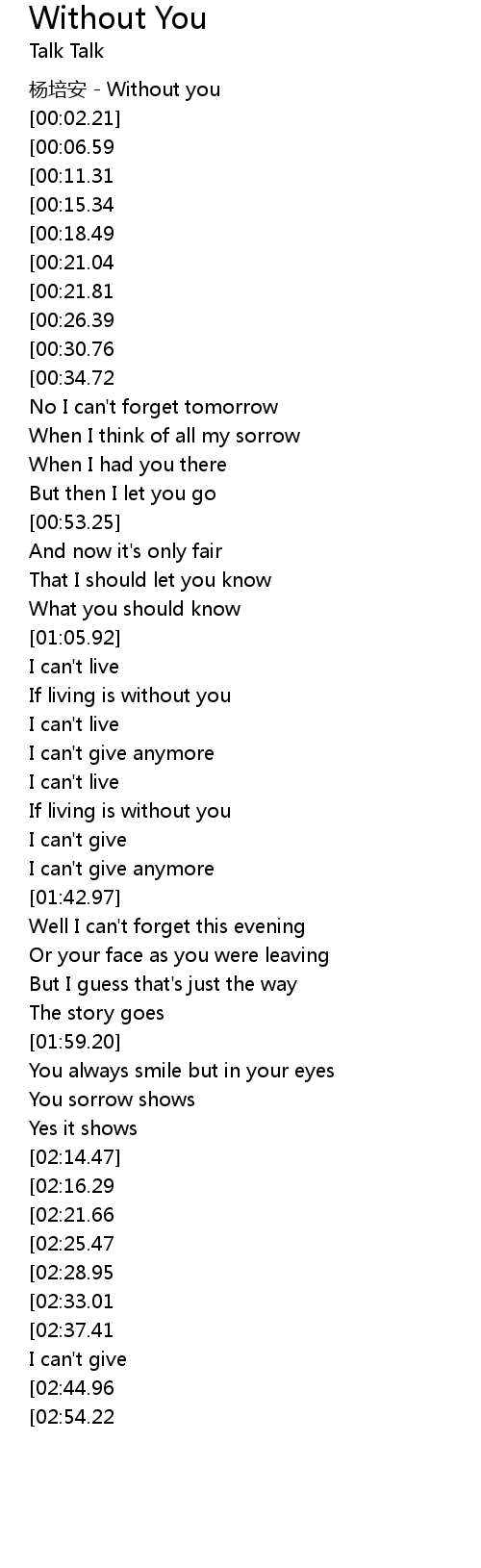 | [03:25.46][02:37.41] | If living is without you |