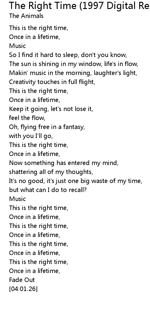 This is the right time, |